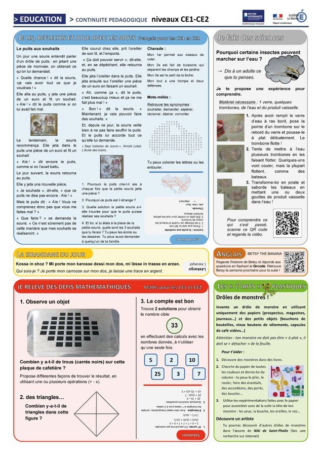 Le Quotidien de La Réunion s'engage dans l'opération « Nation apprenante » en proposant chaque jour une page d'exercices élaborée par des enseignants de l'Académie de La Réunion à destination des élèves de maternelle, CE1/CE2 et CM1/CM2 (par niveau).